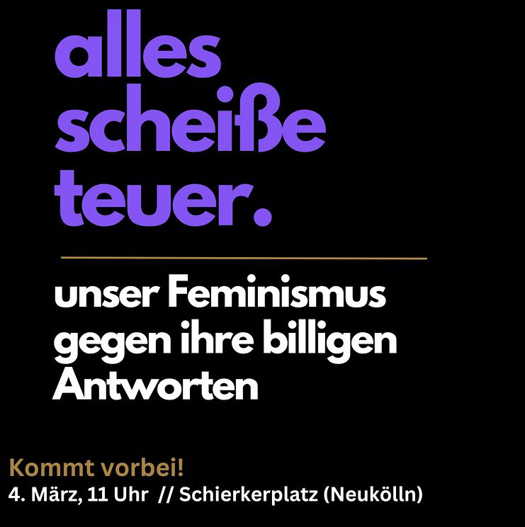 👉Dann komm vorbei: Am 4. März wollen wir zusammenkommen, Dampf ablassen und zeigen: Wir tragen ihre Krise nicht mehr! Unsere Antwort ist feministisch und solidarisch. 💜✊