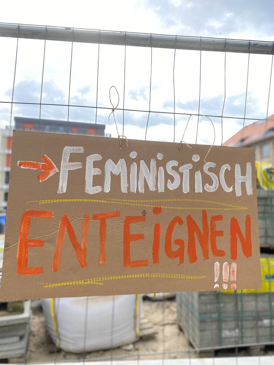 Wir fordern eine feministische Wohnungspolitik, das heißt: Feministisch enteignen! Feministisch vergesellschaften! Wem die Stadt gehört, geht uns alle was an!